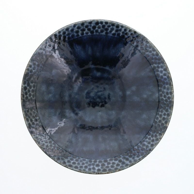 落ち着いた紺色と、縁を彩る繊細な波模様が美しい大鉢です。