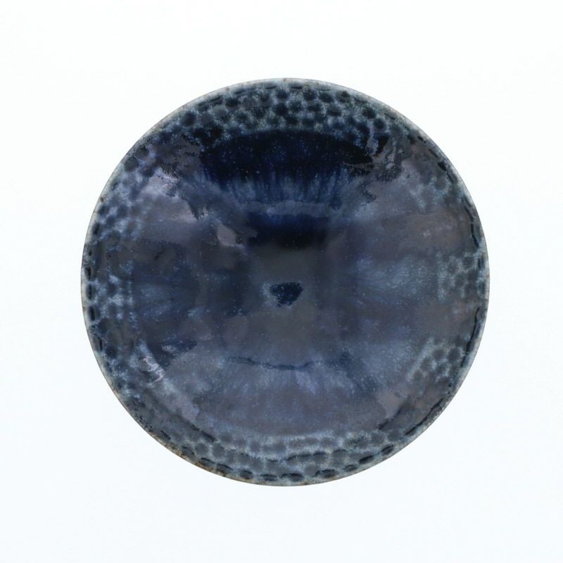 落ち着いた紺色と、縁を彩る繊細な波模様が美しい取り皿です。