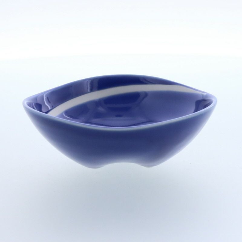 深い青に白が映える、上品な渦模様の変形小鉢