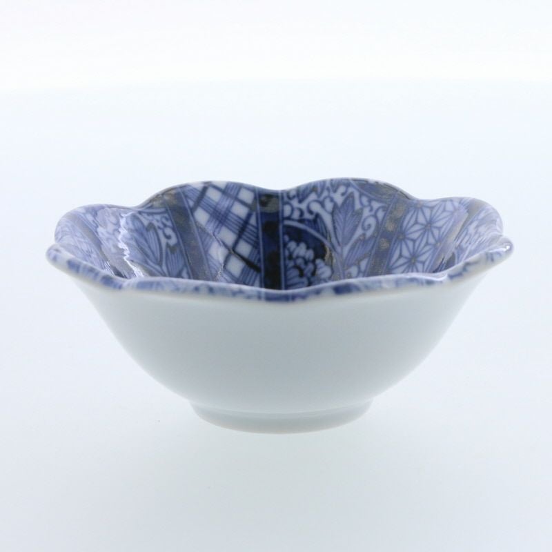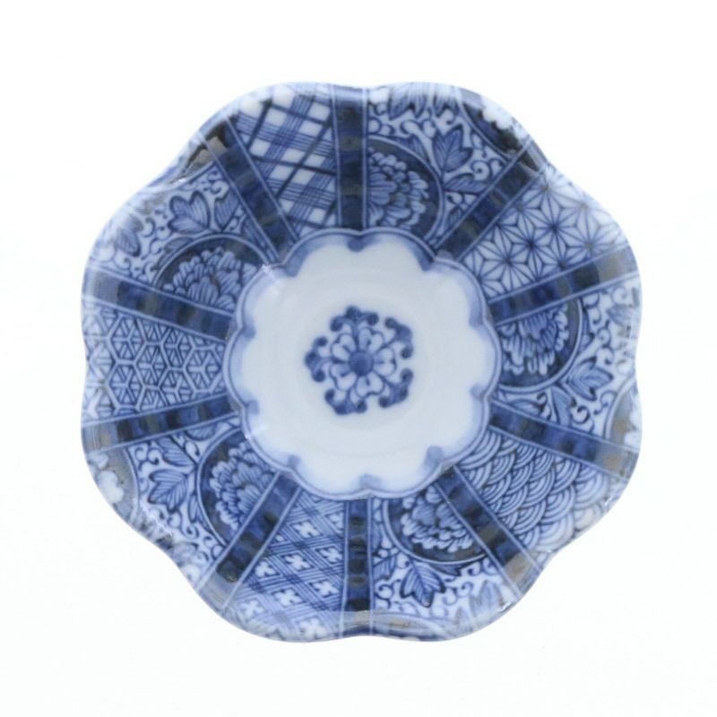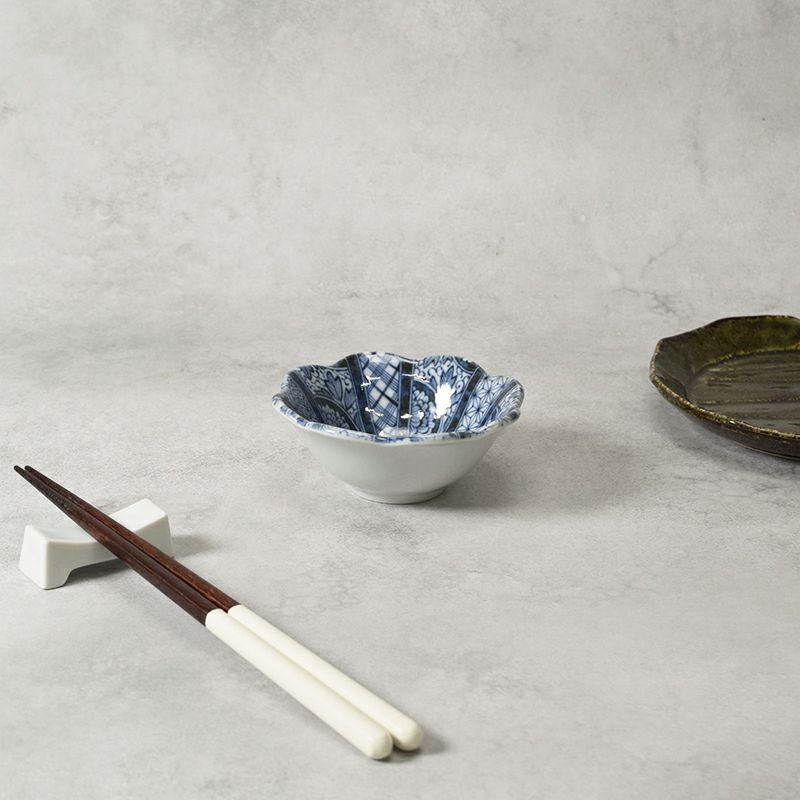 深みのある紺青が映える、花咲くような和の小鉢。