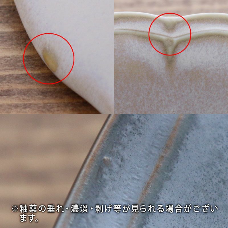 | 注意事項 | ※サイズは全て外寸になります。 ご注意 ※色むらがある場合がございます。 ※ピンホール(針で突いたような小さな穴)が見られる場合がございます。 ※鉄粉(茶色い点・黒い点)が見られます。 ※釉薬の垂れや溜まりが見られる場合がございます。 ※ボロがある場合がございます。 ※お客様のお使いのモニター設定、お部屋の照明等により実際の商品と色味が異なって見える場合がございます。 ※画像に含まれる小物は使用イメージのために使用しています。 |