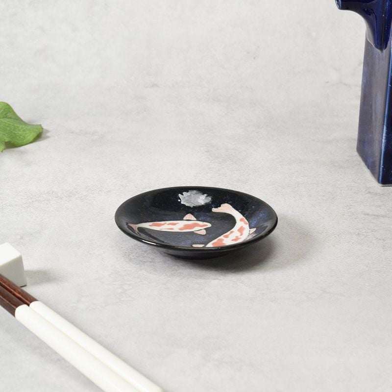 深い藍が映える、縁起の良い錦鯉モチーフの小皿