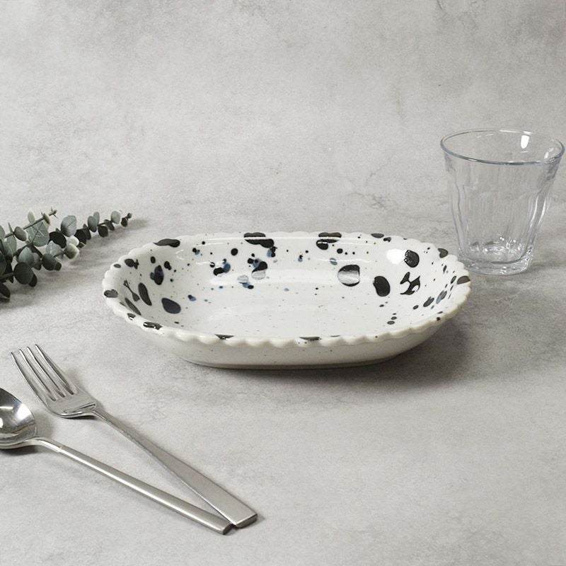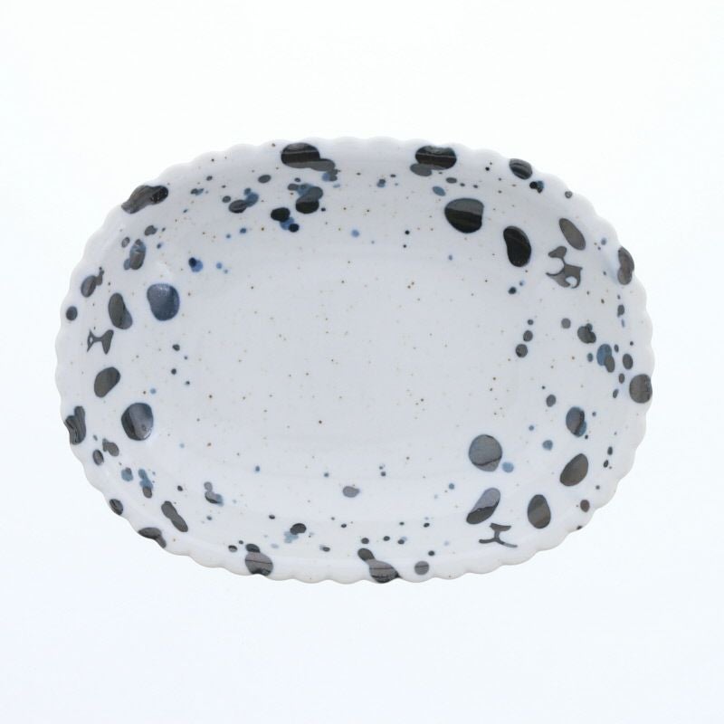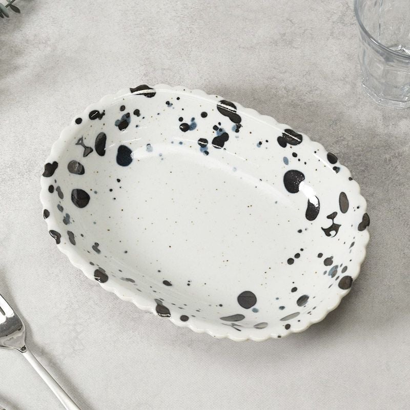 小さなパンダがかくれんぼする、愛らしいデザインの楕円鉢。