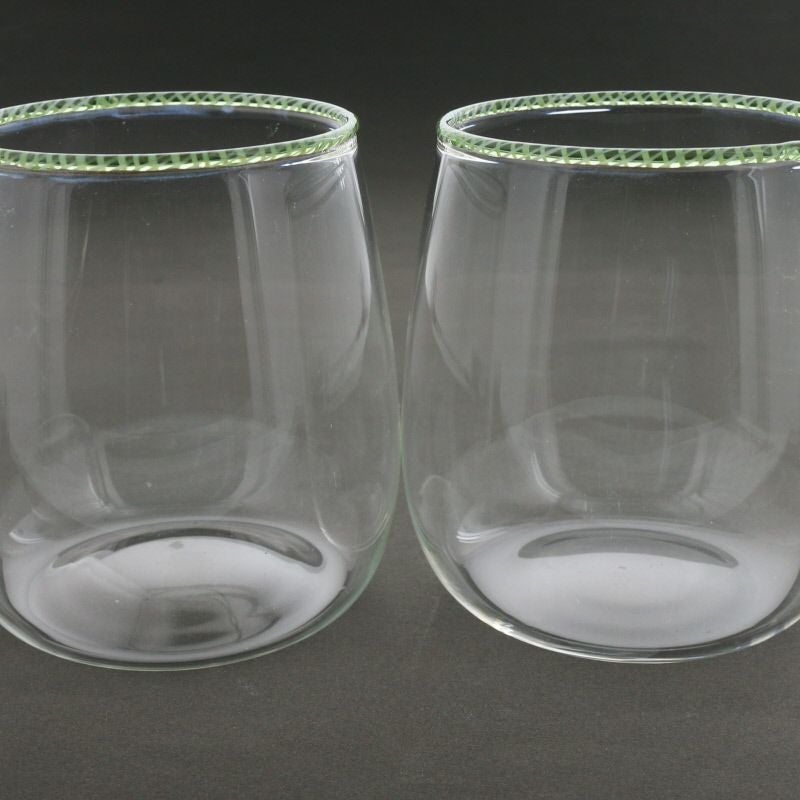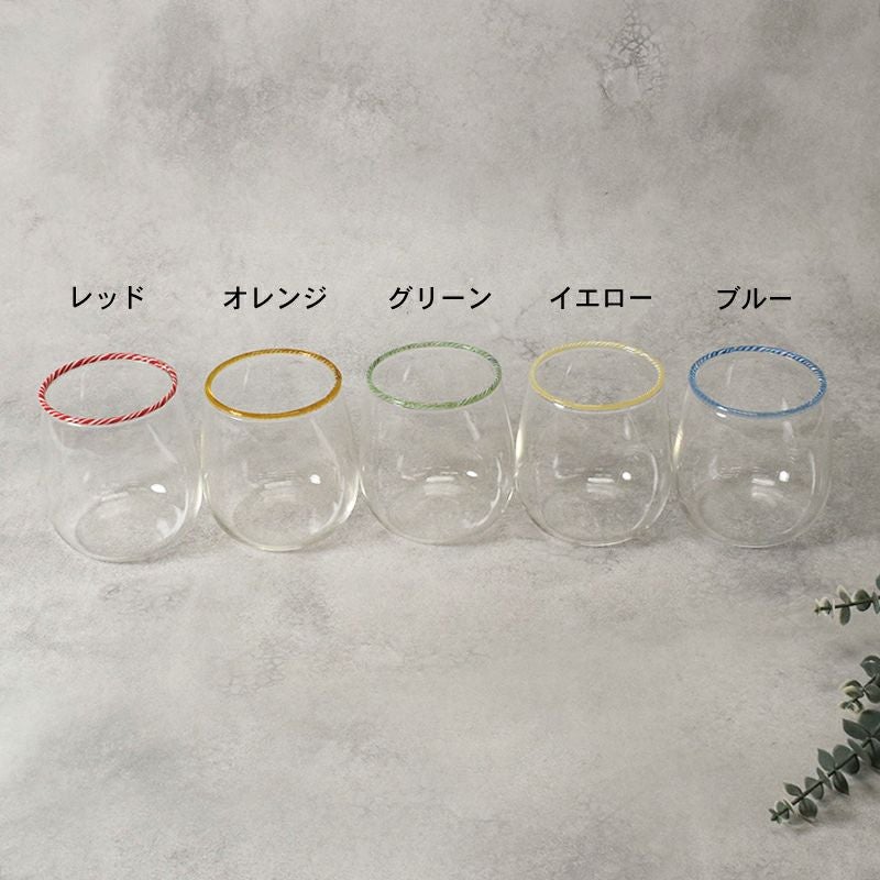 カラフルな縁が映える、爽やかなガラスのタンブラー