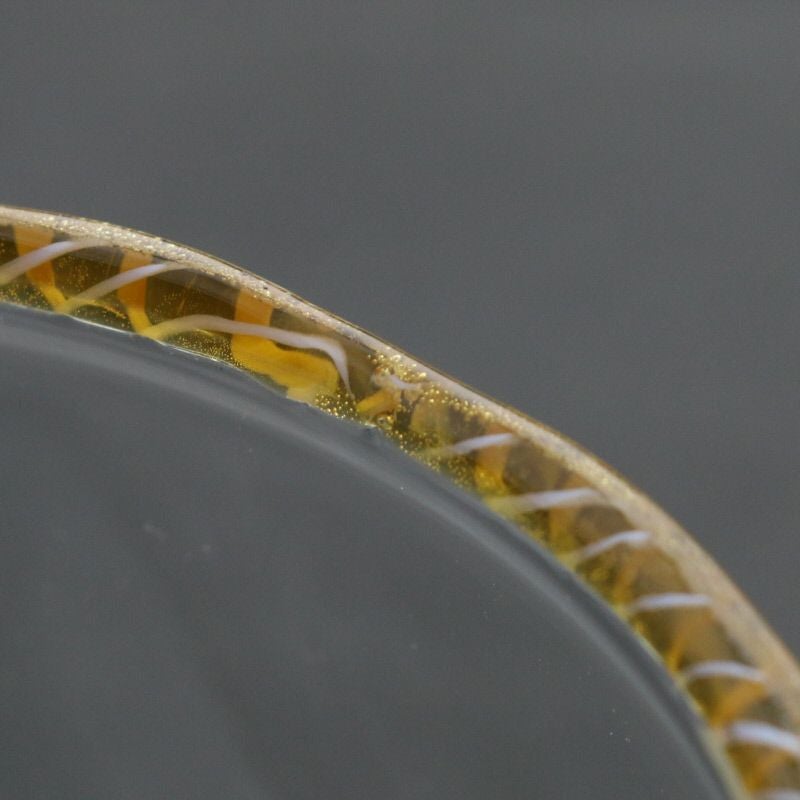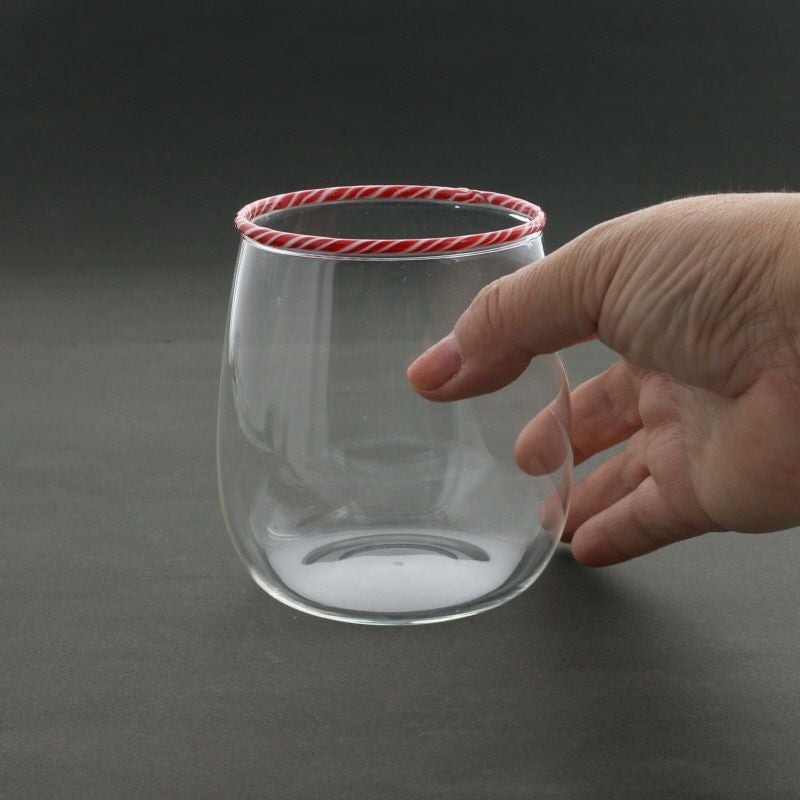 透明感のあるガラスに、スパイラル状の色模様をあしらったガラスタンブラーです。