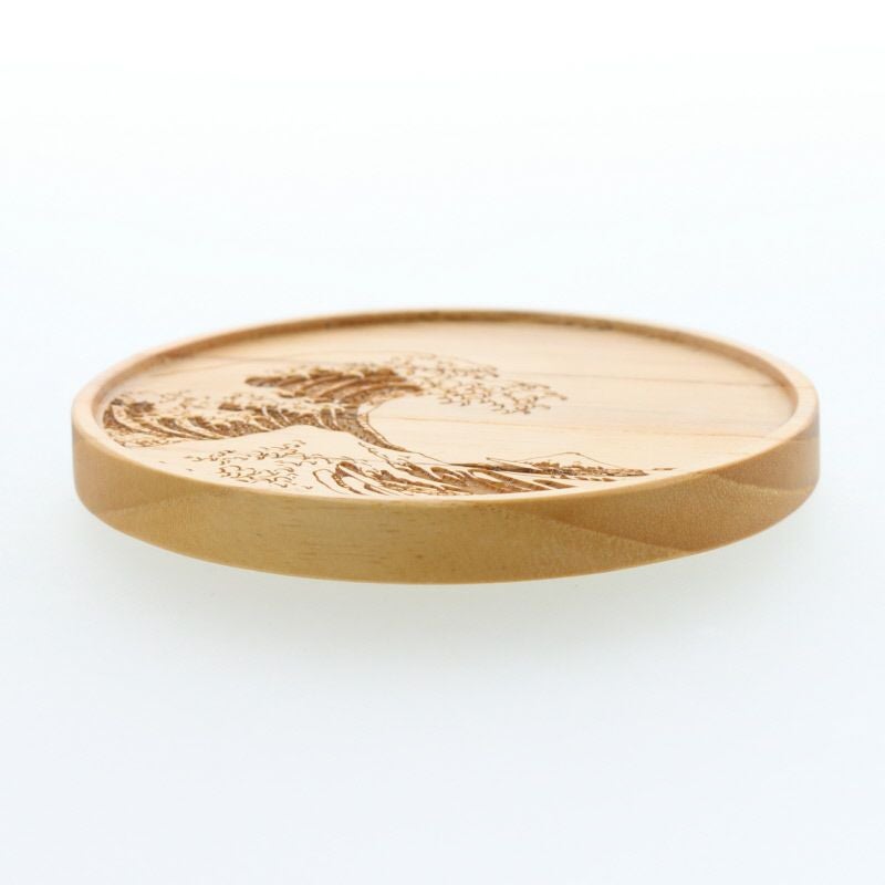 天然木の素朴な風合いに、浮世絵の名作をあしらった木製コースターです。 赤富士や浪裏など、力強さと美しさを併せ持つ絵柄が、テーブルに落ち着いた存在感を添えます。 木肌のやさしい色味とほどよい厚みで、グラスやマグを安定して受け止めます。 普段使いはもちろん、来客時や和の雰囲気を楽しみたい場面にも取り入れやすい一枚です。