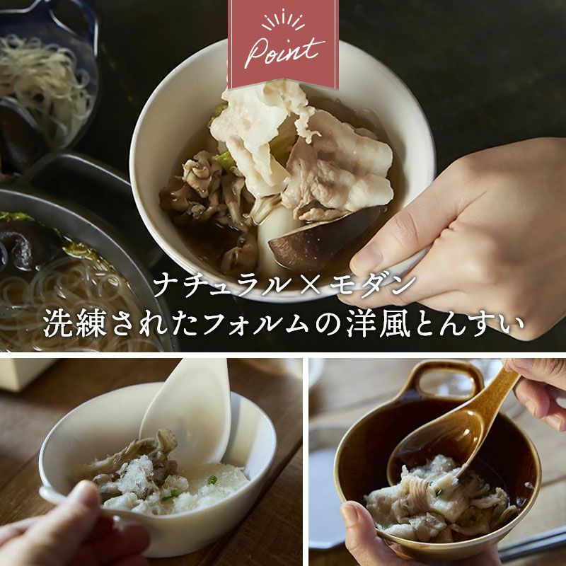 味わい深いカフェカラーのおしゃれなとんすい。 洗練されたフォルムで和洋問わず使えるデザインです。 お鍋の取り鉢としてはもちろん、副菜鉢やスイーツボウルとしてなど季節を問わず活躍します。 同じシリーズのレンゲと揃えれば統一感のある食卓に。