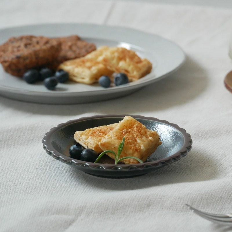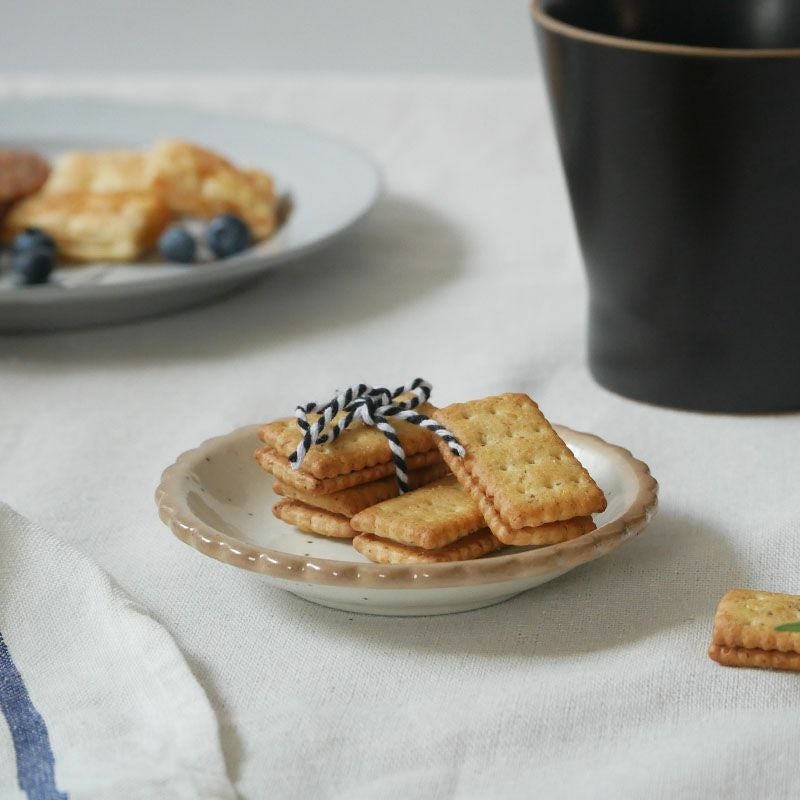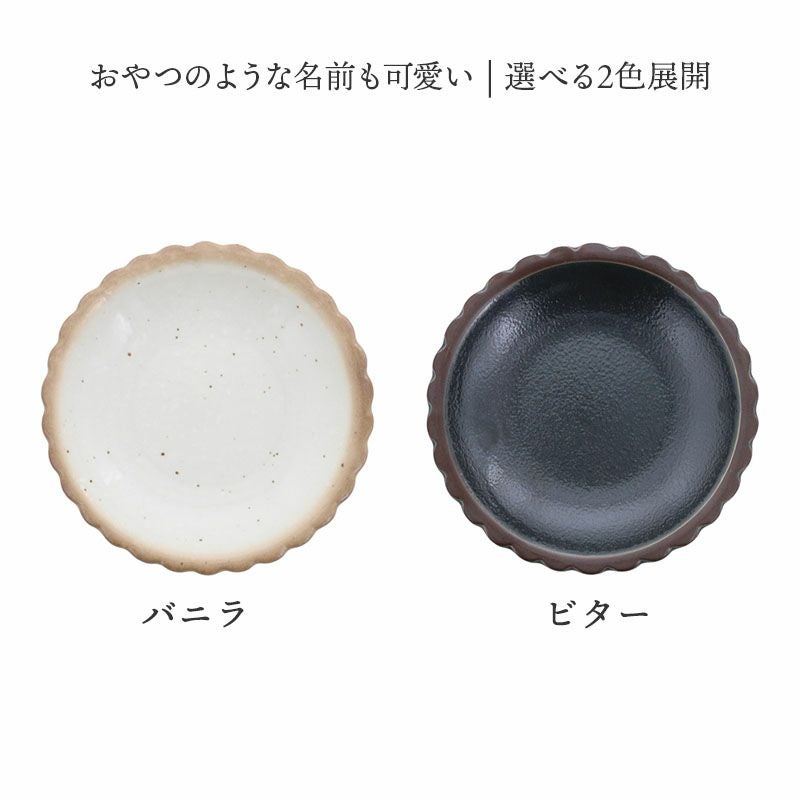 お皿の縁にビスケット型をあしらったおしゃれな小皿です。 シーンに合わせて選べる2色展開。ナチュラルな「バニラ」とシックな「ビター」 菓子皿、おつまみ皿、薬味皿にぴったりなサイズです。