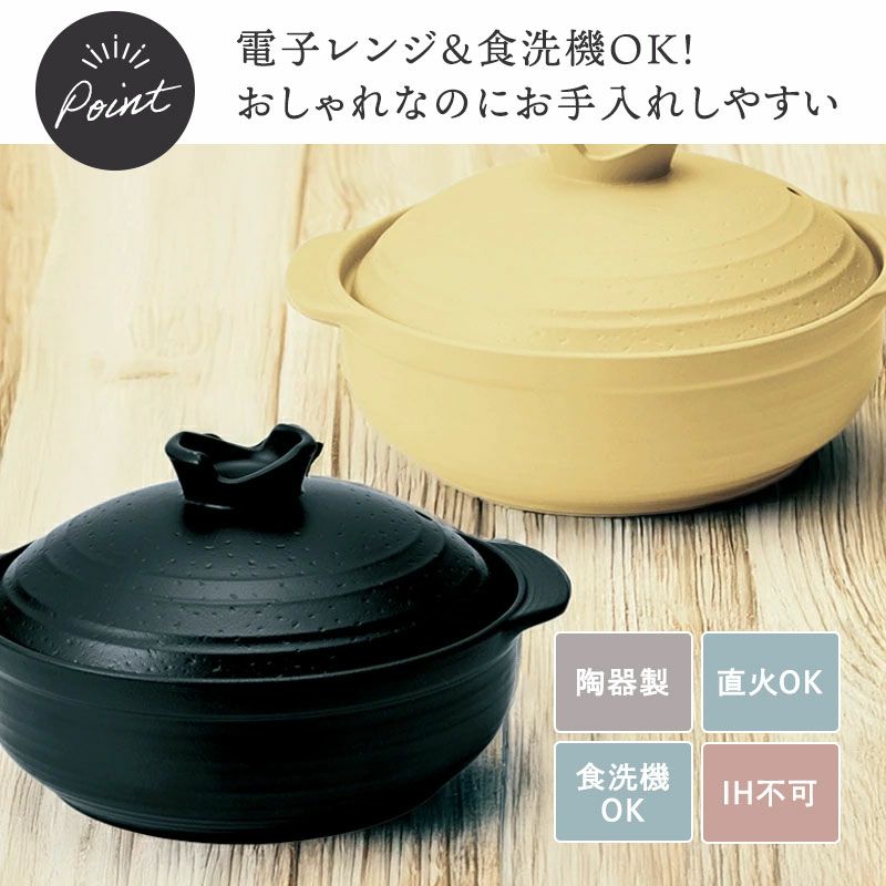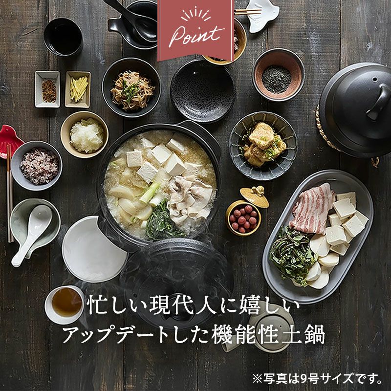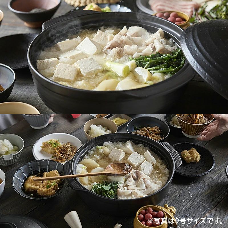 昔ながらの土鍋の温もりを感じられ、軽くて扱いやすい、現代のキッチンにぴったりなデザインです。