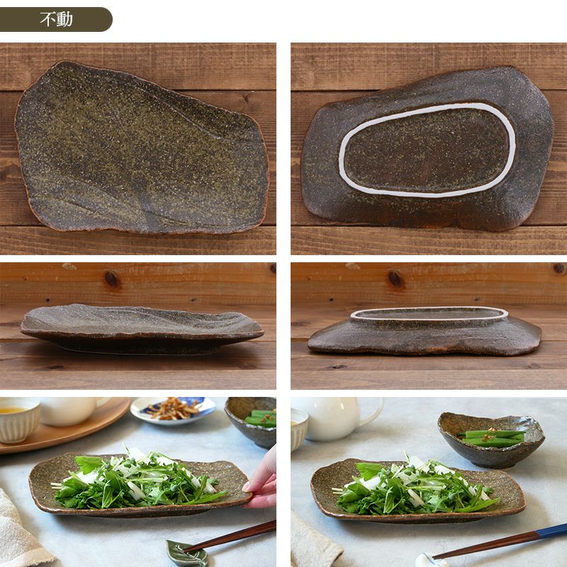 無骨な質感からこだわりを感じる変形皿。 雰囲気がぐっと引き締まって、テーブル全体を大人風にコーディネート。 趣を感じさせる和モダンの雰囲気が、食卓をおしゃれにランクアップさせてくれます。 ディナープレートとして、メインディッシュに最適なサイズのお皿です。