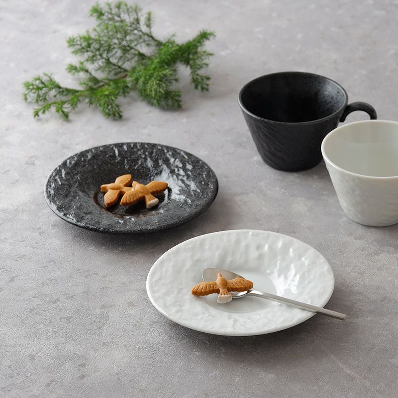 つややかなスレート調のお皿です。 コーヒーカップやティーカップの受け皿となるソーサーとしても大活躍。 約15cmの中皿サイズは、お茶菓子やケーキを乗せるデザート皿にぴったり。 料理の取り皿、サラダ皿、パン皿などにもお使いいただけます。