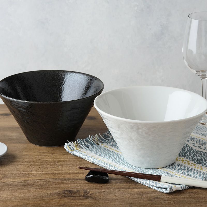 上品で高級感あるスレート調のボウルです。 シンプルでモダンな器だから、和洋どちらの料理にも合わせやすいのがうれしいポイント。 パーティーやおもてなし料理も素敵に演出してくれます こちらは台形型の大鉢サイズ。 麺鉢・丼もの、サラダやおかずの盛り鉢に最適です。