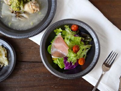 リムの削ぎ模様とカラーが 美しく和モダンな「銀彩鉄結晶シリーズ」のサラダボウル。 サラダやスープの他に、煮物や和え物の盛り付けにオススメの中鉢です。