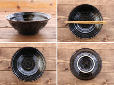 和の趣たっぷりのラーメン丼ぶり。 ダークな深みある色合いが落ち着きを見せる、高級感ある大人の雰囲気。 外側の素地をわざと凸凹とさせ、器の表情を楽しめる和食器です。 ラーメン鉢以外にも、うどんなどの麺鉢としてはもちろん、煮物やサラダの盛り鉢にもどうぞ。 こちらはご家庭で使いやすい定番の大きさ、6.3寸サイズです。