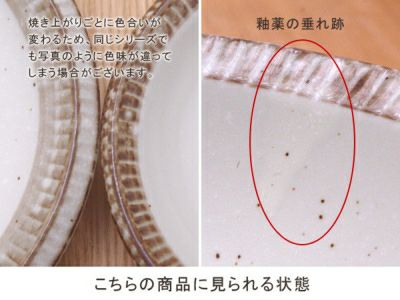 | 注意事項 | ※サイズは全て外寸になります。 ※不明な点がございましたら、お気軽にお問い合わせ下さい。 ご注意 ※食器の渕部分の濃淡が商品一つ一つにより異なります。 ※釉薬のムラや垂れがございます。 ※食器の表面に小さな黒い斑点がデザインとして入っています。 ※お客様のお使いのモニター設定、お部屋の照明等により実際の商品と色味が異なって見える場合がございます。 ※画像に含まれる小物は使用イメージのために使用しています。 |