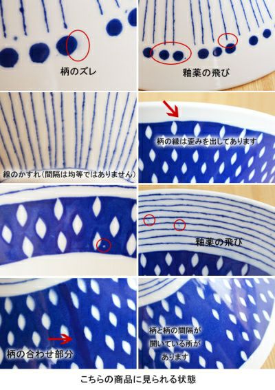 | 注意事項 | ※サイズは全て外寸になります。 ※不明な点がございましたら、お気軽にお問い合わせ下さい。 ご注意 ※アウトレット商品込みの販売です。 ※こちらの商品は、釉薬の飛びはね、濃淡、柄のズレ、かすれなどが見られます。予めご了承くださいませ。 ※お客様のお使いのモニター設定、お部屋の照明等により実際の商品と色味が異なって見える場合がございます。 ※画像に含まれる小物は使用イメージのために使用しています。 |