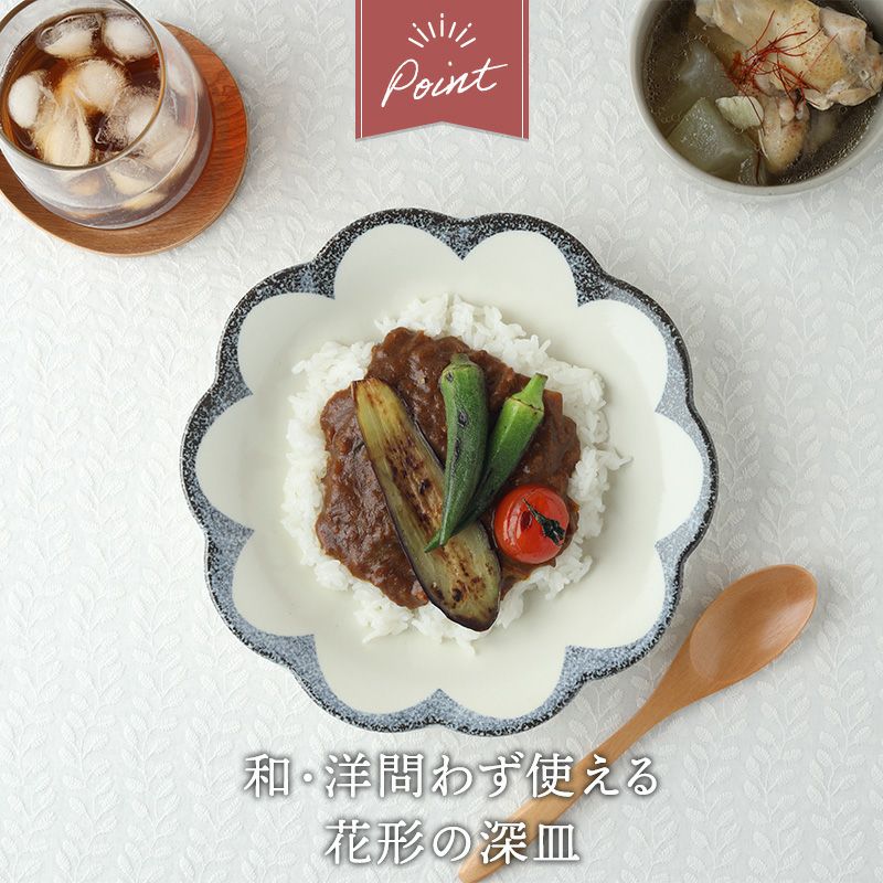 和・洋問わず使える、花の形をした深皿。 シンプルなお料理も盛り付けるだけで華やかに演出してくれます。 適度な深さがあるので汁気のある料理にも最適! 約21cmの中皿サイズでパン皿、ケーキ皿、カレー皿、スープ皿、おかずの取り皿などにおすすめです。