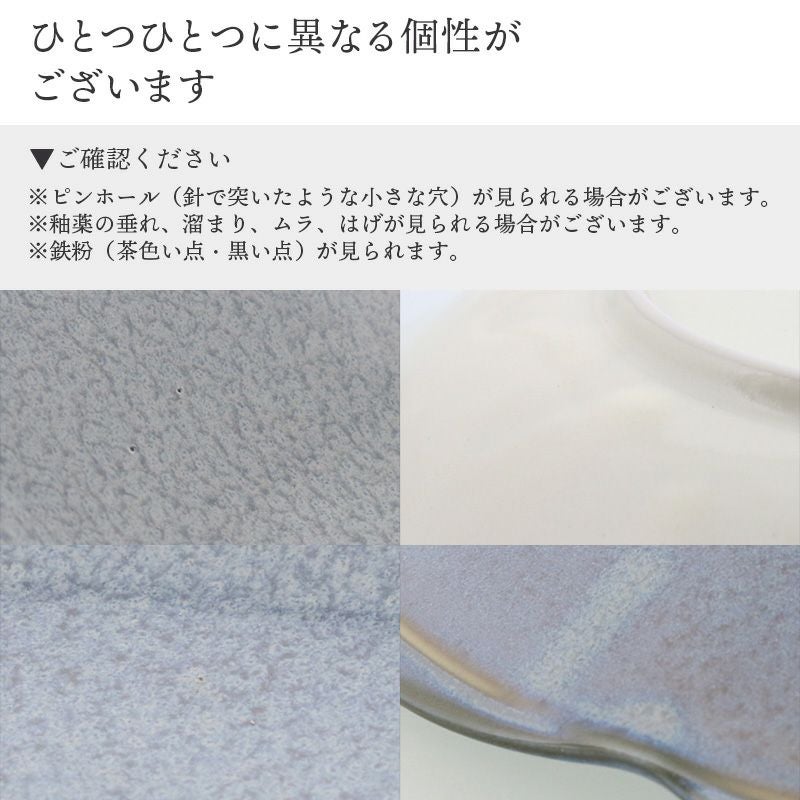 | 注意事項 | ※サイズは全て外寸になります。 ※サイズ・重さなどは商品により誤差があります。 ご注意 ※ピンホール(針で突いたような小さな穴)が見られる場合がございます。 ※釉薬の溜まりやムラ、たれなどが見られる場合がございます。 ※鉄粉(茶色い点・黒い点)が見られます。 ※お客様のお使いのモニター設定、お部屋の照明等により実際の商品と色味が異なって見える場合がございます。 ※画像に含まれる小物は使用イメージのために使用しています。 ※不明な点がございましたら、お気軽にお問い合わせ下さい。 |