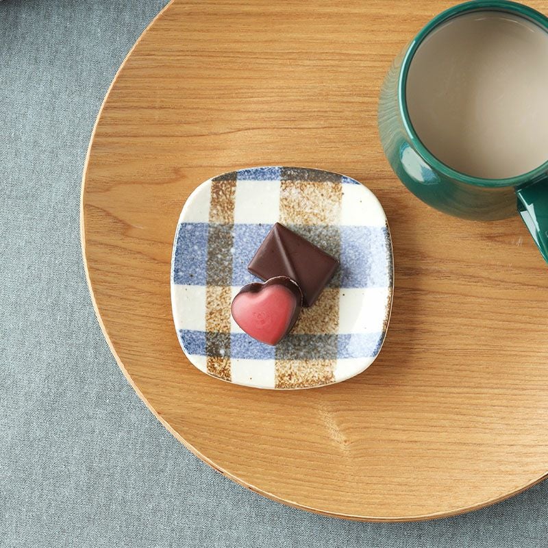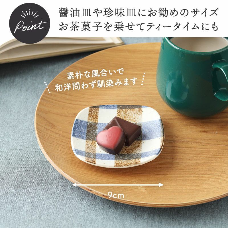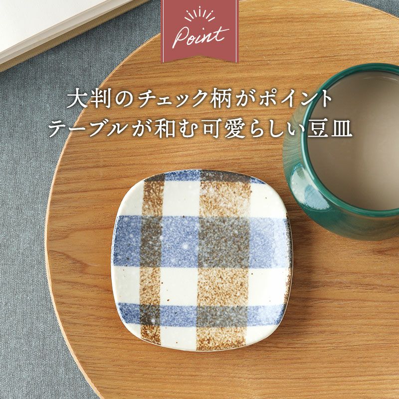 爽やかなブルーとベージュの落ち着いた大判チェックが可愛いお皿。 小皿は醤油皿、薬味皿、珍味皿などに使えるサイズ。他にもカットフルーツや、菓子皿など、デザートプレートにもおすすめ。 小さいサイズのお皿ですので、たくさん揃えてちょっとしたおかずや前菜皿・副菜皿にも最適です。 焼き物ならではの温かい質感が食卓を明るくしてくれます。