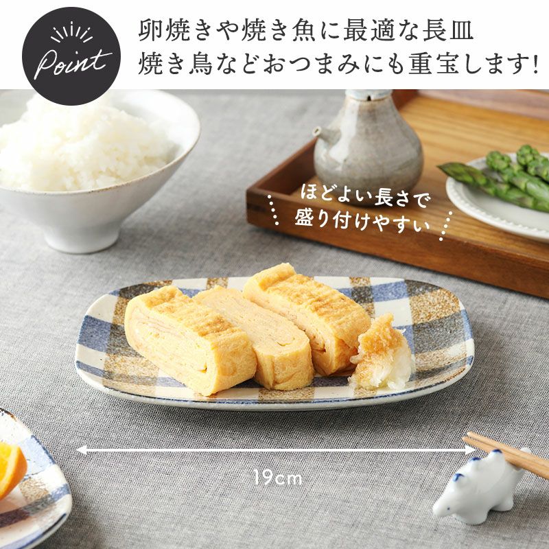 レトロなデザインがかわいい長皿です。 焼き魚や卵焼きにちょうど良いサイズです。 刺身皿やサラダ皿、ちょっとした揚げ物などを盛りつける副菜皿、枝豆や生ハム、チーズなどを乗せるおつまみ皿と多用途に活躍してくれます。 ほっこり温かい雰囲気の食卓になりますよ♪