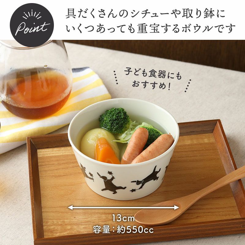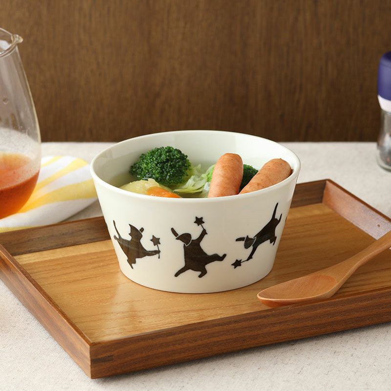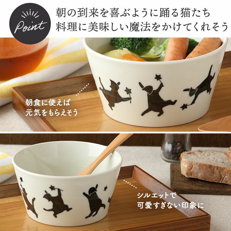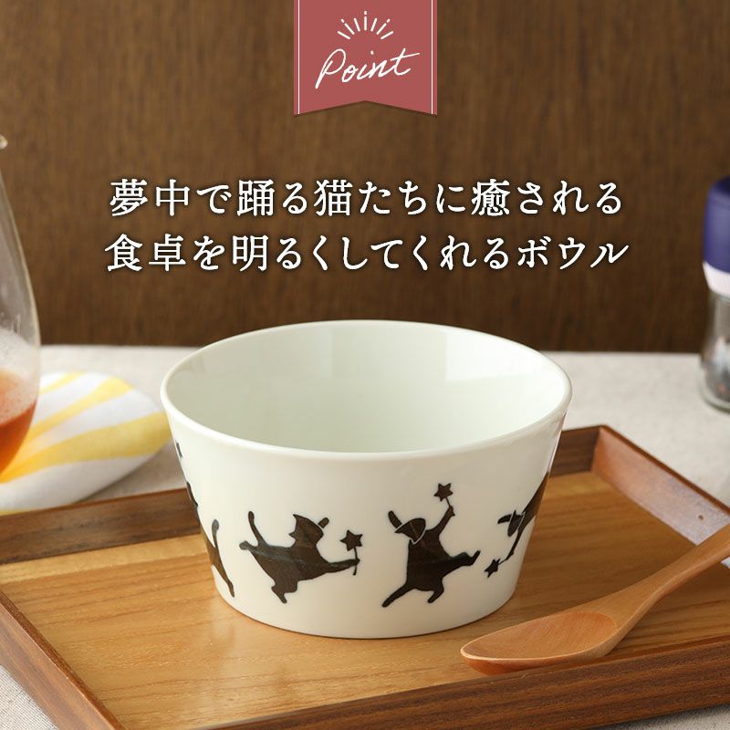 猫のデザインがほっこりかわいいボウル。 スープ、みそ汁などの汁椀、シチューの取り分けなど取り鉢にもぴったり。 煮物などおかずの盛り付け、デザートボウルなど、和洋問わず幅広くお使いいただけます。 お子様用のラーメン丼ぶりなどのお子様食器としてや、小さめの麺鉢をお探しの方にもおすすめ。