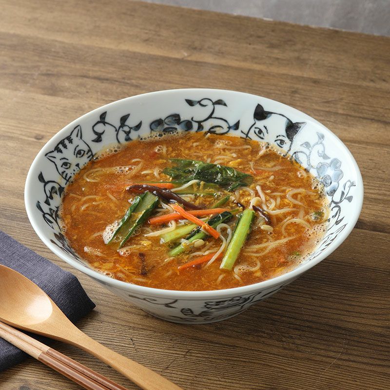 使う度にほっと癒される、猫の絵柄がかわいいラーメンどんぶり。