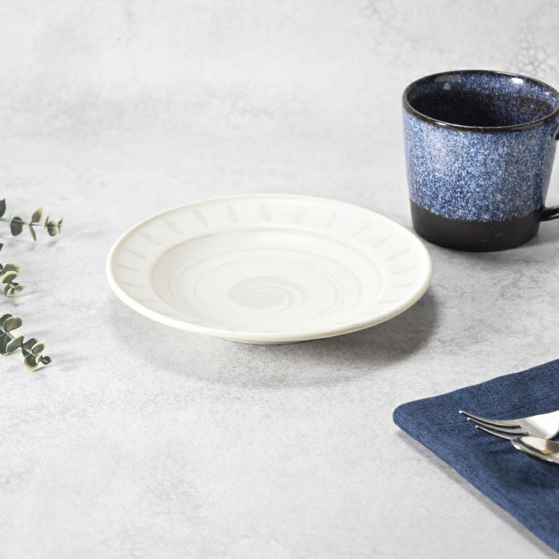 毎日使いたくなる、シンプルなリムプレートです。 中皿は取り皿はもちろん、前菜皿や副菜皿に活躍します。 サラダ皿、パン皿、ケーキ皿などデザートプレート等、多用途に使える便利なサイズのお皿です。 シンプルながらもテーブルで映える器です。