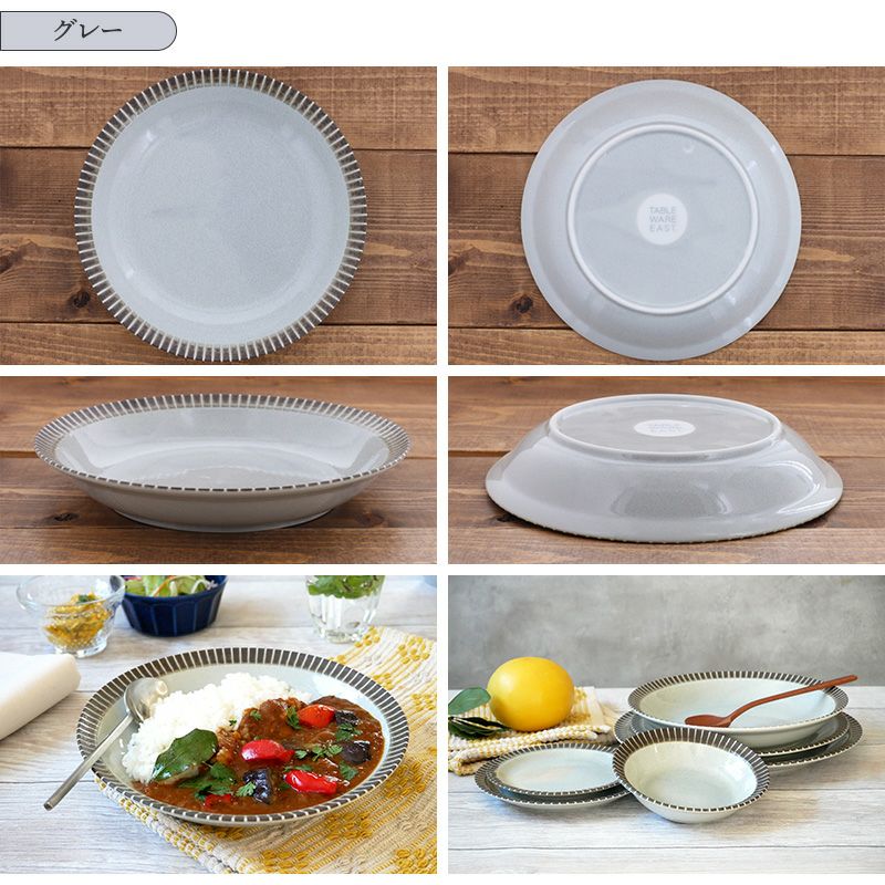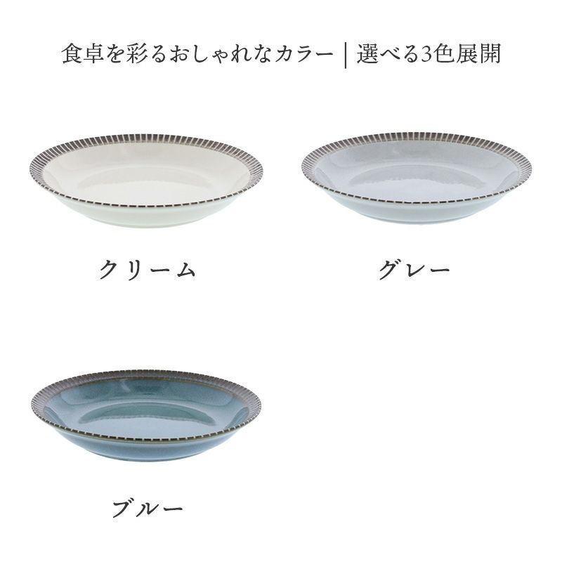 モダンなデザインで和食・洋食どちらにもしっくり馴染んでくれるお皿。 リムにある十草模様によって、料理の彩りが引き立ち、食卓をワンランクアップしてくれます。 こちらカレー皿、パスタ皿のほかにも盛り皿・主菜皿にもぴったりなサイズ。 和カフェ風のおしゃれな食卓を演出してくれます。