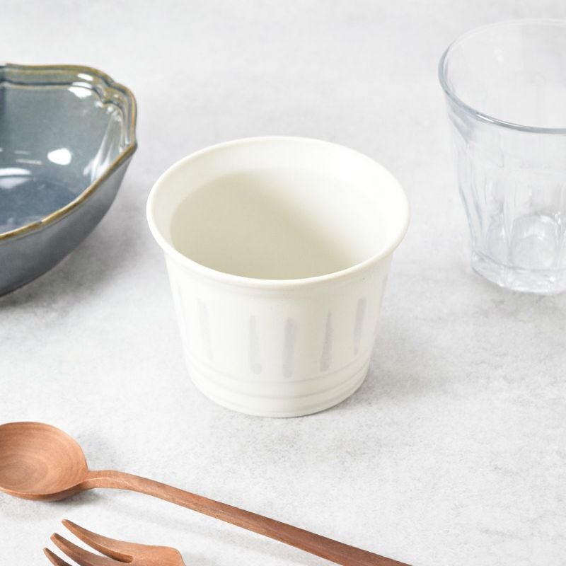 毎日使いたくなる、シンプルなマルチカップです。 使いやすい定番の形状ですので、茶碗蒸しや、プリンなどのデザートカップ、スープカップ、小鉢、湯呑みなどにも使えて便利ですよ。 季節を問わず活躍してくれます。 シンプルながらもテーブルで映える器です。