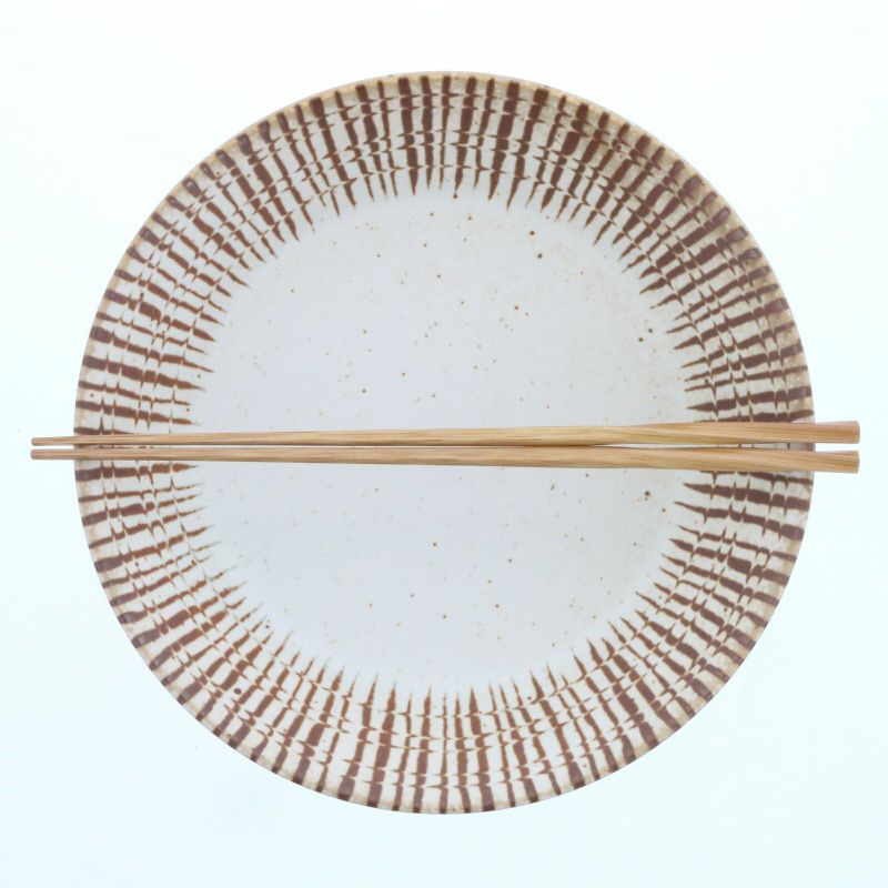 ベージュとブラウンの柔らかいコントラストが温かみのある印象の和食器です。 約20.7cmの大皿はカレーやパスタをはじめ、おかずの盛り皿など多用途にお使いいただけます。 和カフェ風なアレンジも楽しめますよ。 また適度な立ち上がりがあるので、汁気のあるおかずにも最適です。