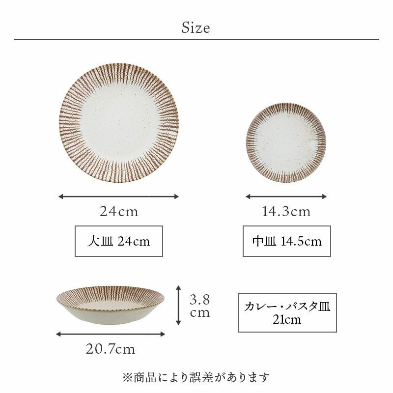 | 注意事項 | ※サイズは全て外寸になります。 ※サイズ・重さなどは商品により誤差があります。 ご注意 ※釉薬の垂れや、ムラが見られる場合がございます。 ※縁の色の濃さにムラが見られる場合がございます。 ※お客様のお使いのモニター設定、お部屋の照明等により実際の商品と色味が異なって見える場合がございます。 ※画像に含まれる小物は使用イメージのために使用しています。 ※不明な点がございましたら、お気軽にお問い合わせ下さい。 |