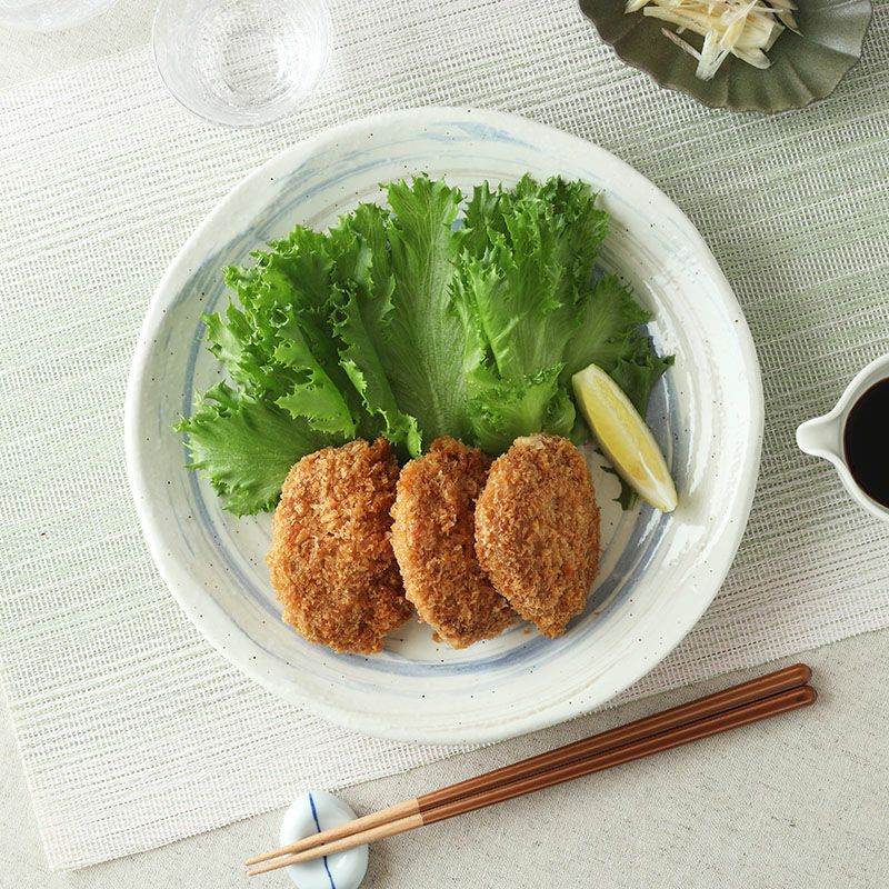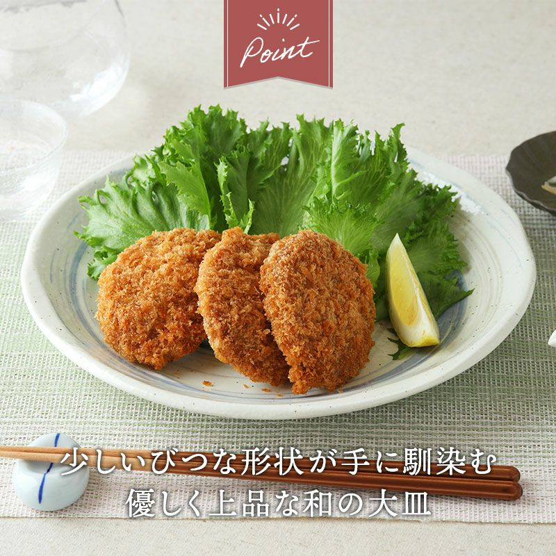和食器らしいうず模様で料理を引き立てる、うず粉引シリーズ。 黒い斑点が混ざった素地といびつな形に温かみがあります。 メイン料理だけでなく、パスタ皿、おかずの盛り皿、刺身やふぐ刺しの盛り合わせなどにもぴったりです。