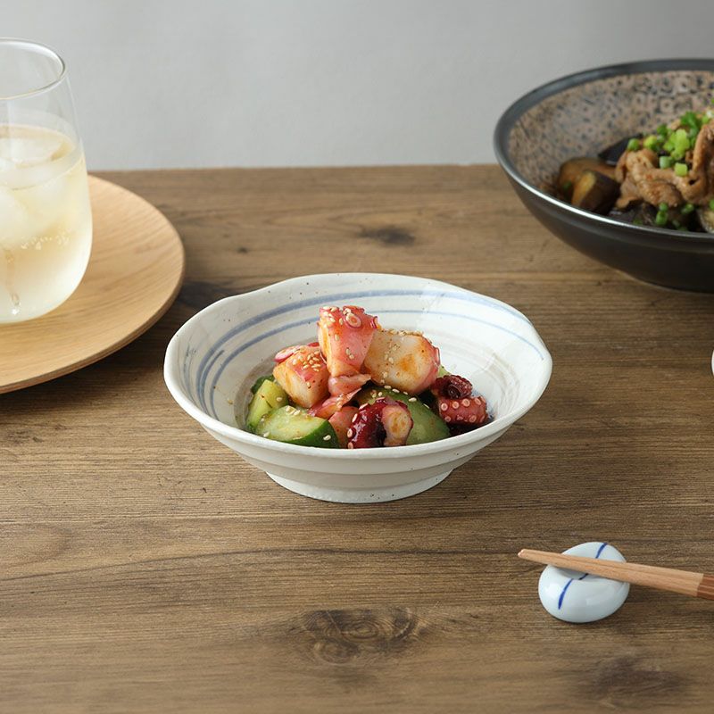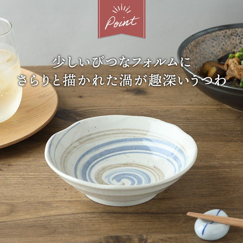 和食器らしいうず模様で料理を引き立てるうず粉引シリーズ。 黒い斑点が混ざった素地といびつな形に温かみがあります。 和食の定番メニューの煮物、肉じゃがの盛り鉢や、サラダボウルとしてもおすすめ。