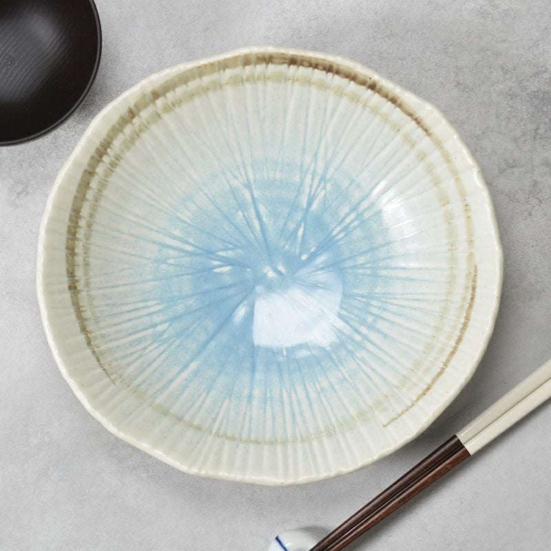 青の美しさが食卓を彩る、和の大鉢。 大鉢はおかずの盛り鉢、サラダボウルなど、多用途に使えます。深皿ですので汁物や汁気のある料理もOK。 家族での食卓に用いたり、おもてなし・パーティーシーンでも活躍する大きいボウルです。 食卓に特別なアクセントを加えることができる一枚です。