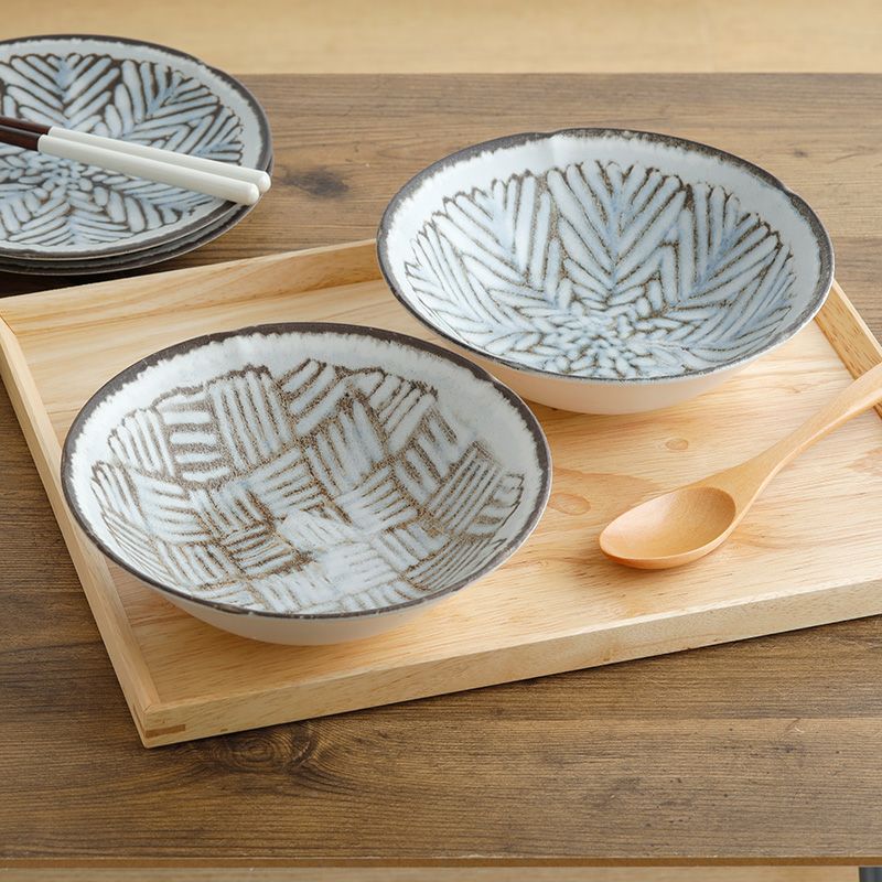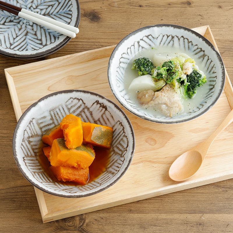 手描き風のデザインで和食・洋食どちらにもしっくり馴染んでくれるボウル。 優しい色合いで料理の彩りが引き立ち、食卓をワンランクアップしてくれます。 こちらは中鉢サイズでおかず鉢、サラダボウルなど汁気のあるおかずの器にぴったり。 普段使いからおもてなし食器としてもお使いいただけます。