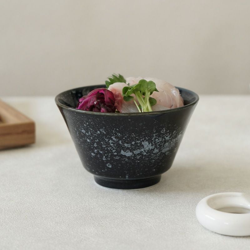 シックな色味と不規則なむらのような柄が印象的な丼ぶり。 約11.4cmの丼ぶりはお子様用どんぶりとして、スープボウルや大きめのお茶碗としてもお使いいただけます。 ミニ丼としても使いやすいサイズなので親子丼や焼き肉丼等にも◎ 取り鉢にもちょうどよい大きさなので複数揃えることもおすすめです。