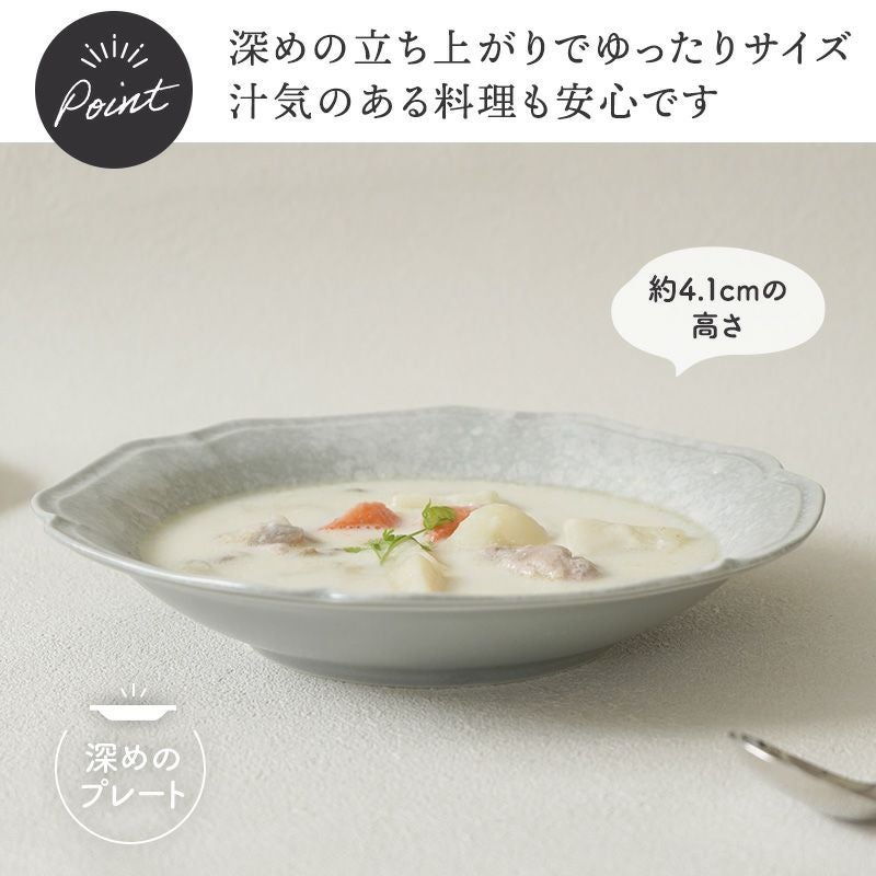 スープ皿 21.5cm 細雪 ささめゆき グレー