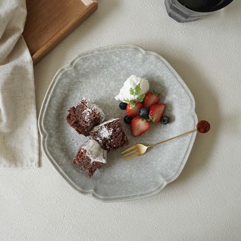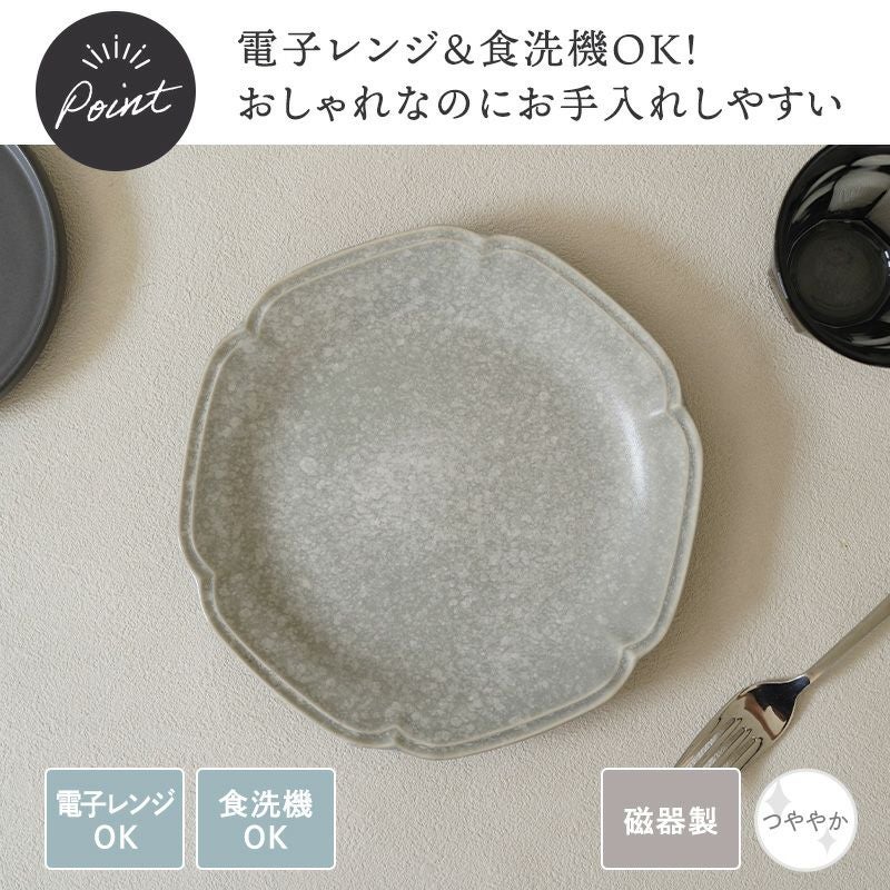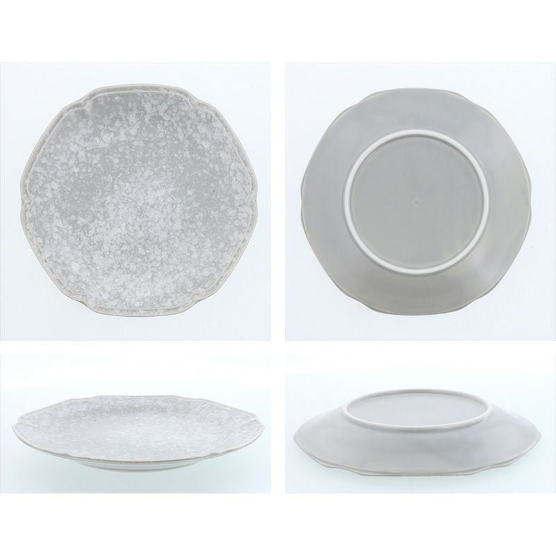 さりげない雪のような模様が施されたささめゆきシリーズの食器。 アンティークのような風合いでいつもの食卓をワンランクアップさせてくれる器です。 こちらのプレートは朝食のワンプレートやおかずの盛り皿の他、サラダ皿、パン皿、ケーキ皿などデザートプレートにもぴったり。 普段使いからおもてなし食器としてもお使いいただけます。