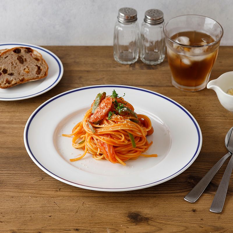 エレガントで高級感のある「インディゴライン」シリーズ。 上品なブルーラインとホワイトカラーは和食にも洋食にも合うので、使いやすいのが魅力的。 食材を引き立ててくれるシンプルなデザインなので、お好きな料理を並べるだけでご自宅でホテルディナーのような食卓を演出できます。 こちらは24cmの大皿サイズ。パスタ皿、メインディッシュ、ランチプレートなどにおすすめ。 おもてなし食器としても最適です。