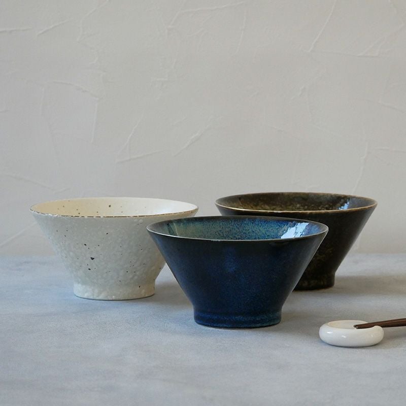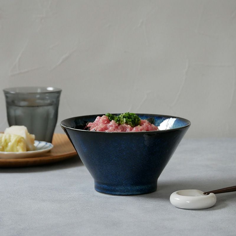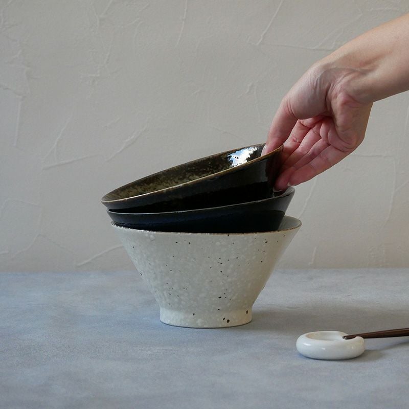 食卓によく馴染むモダンなデザインのおしゃれなどんぶり。 落ち着いたカラーでお手持ちの食器とも合わせやすく、さまざまシーンで大活躍。 こちらは深さのある台形どんぶりで、中鉢程の大きさですが意外とたっぷり入ります。 うどん丼ぶり、丼物メニューなどのどんぶりとしてはもちろん、具沢山のスープボウルにもオススメです。