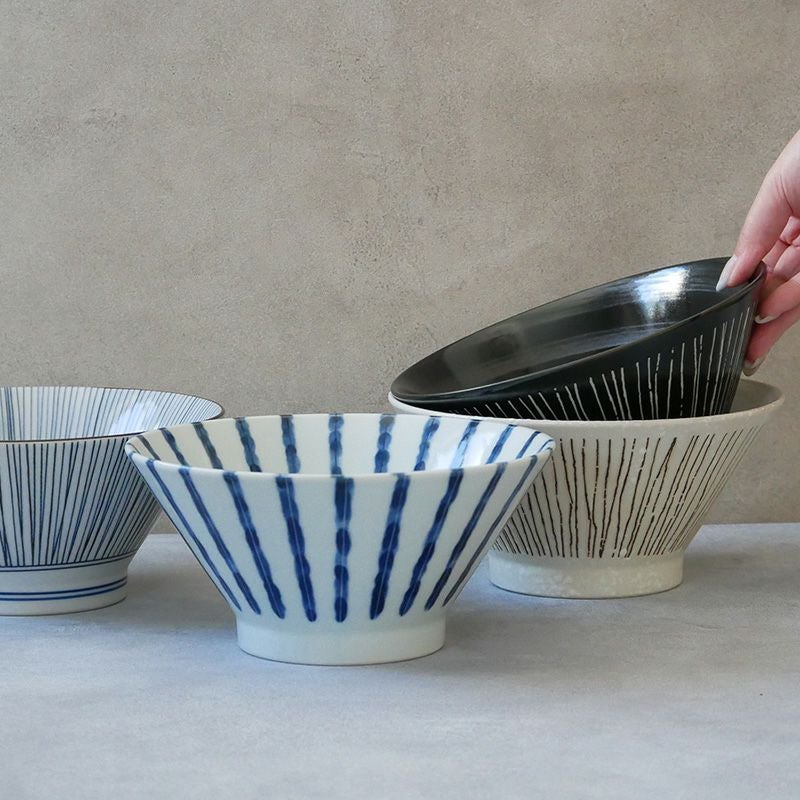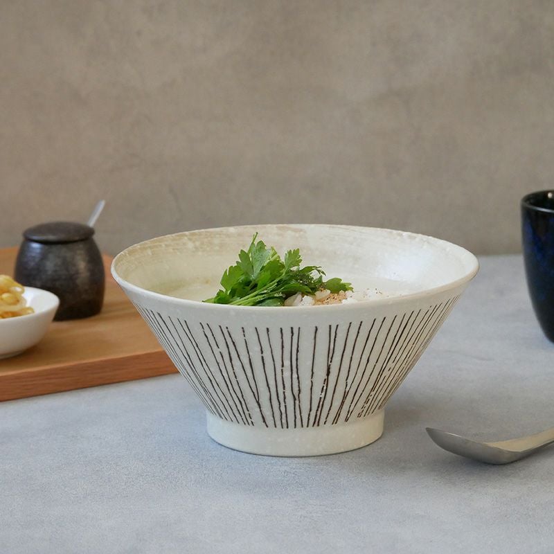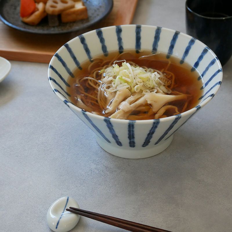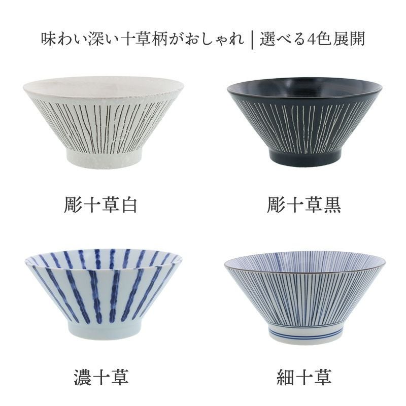 食卓によく馴染むモダンなデザインのおしゃれなどんぶり。 和食器の伝統柄、十草はどんな料理にも合わせやすく食材を華やかに見せてくれます。 こちらは深さのある台形どんぶりで、ラーメンやうどんの麺類、丼ぶりものに最適。 ほかにも大鉢や盛り鉢としても使えたり、具だくさんの料理、しっかり食べたい方にぴったりな丼ぶりです。