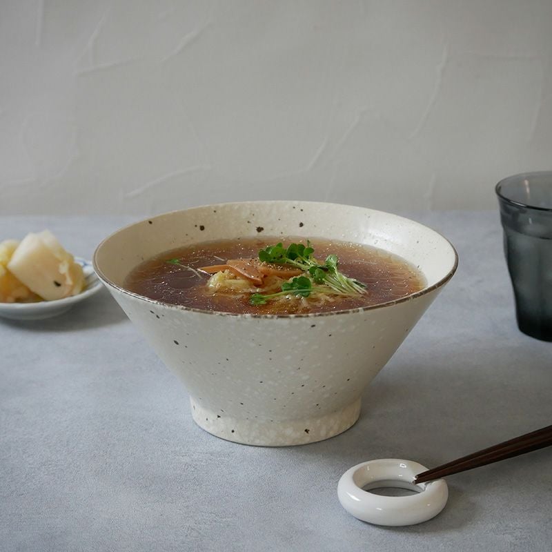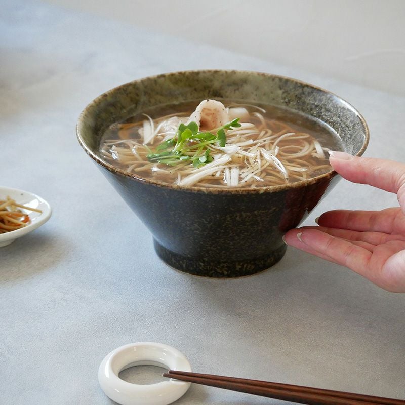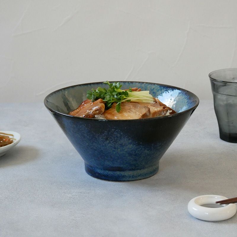 食卓によく馴染むモダンなデザインのおしゃれなどんぶり。 落ち着いたカラーでお手持ちの食器とも合わせやすく、さまざまシーンで大活躍。 こちらは深さのある台形どんぶりで、ラーメンやうどんの麺類、丼ぶりものに最適。 ほかにも大鉢や盛り鉢としても使えたり、具だくさんの料理、しっかり食べたい方にぴったりな丼ぶりです。