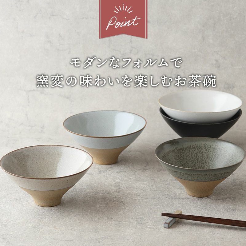 モダンなフォルムで窯変の味わいを楽しむお茶碗