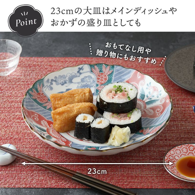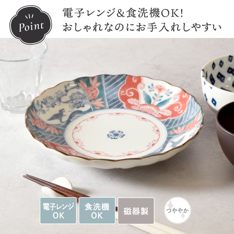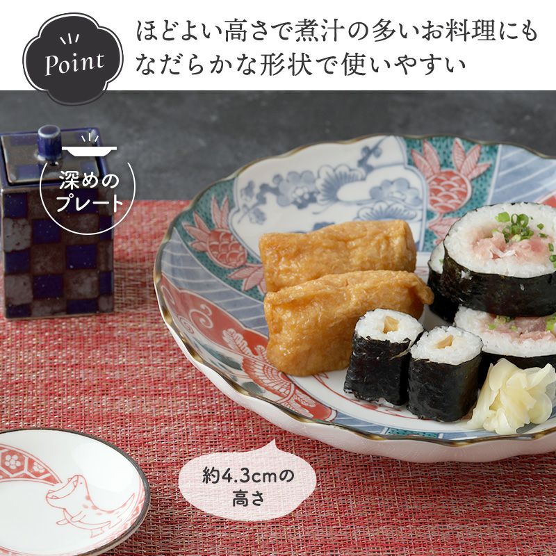 和柄×恐竜の組み合わせが遊び心あふれる大皿。 一見高貴なイメージの和柄ですが、絵柄をよく見ると恐竜が…♪ 23cmの大皿はメインディッシュ用の主菜皿、パスタ皿、モーニングやランチのワンプレート、おかずの盛り皿としてお使いいただけます。 同じシリーズと合わせて、おもてなし用やちょっとした贈り物にもおすすめです。