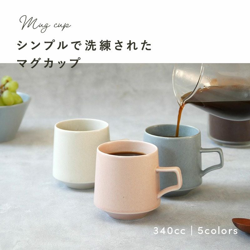 シンプルで洗練されたデザインと淡いニュアンスカラーがどんなテイストの食卓にも馴染みます。約340?たっぷり入るコーヒーカップ。その他、ティーカップ、スープカップ、日本茶をたっぷり注いで、大きめの湯のみとしても寒い時期に重宝します。気軽におしゃれなテーブルコーディネートが楽しめる食器シリーズです。