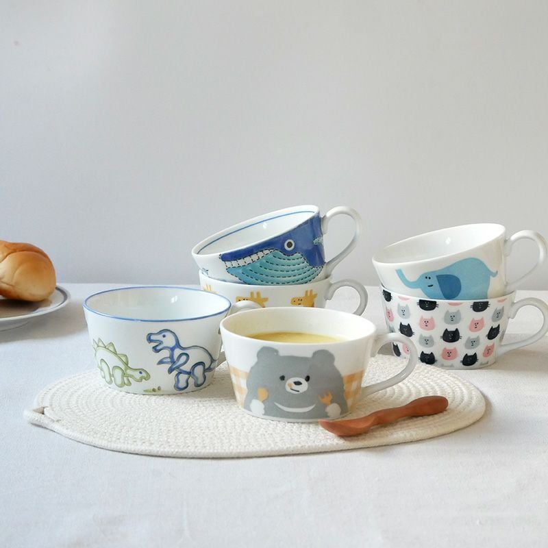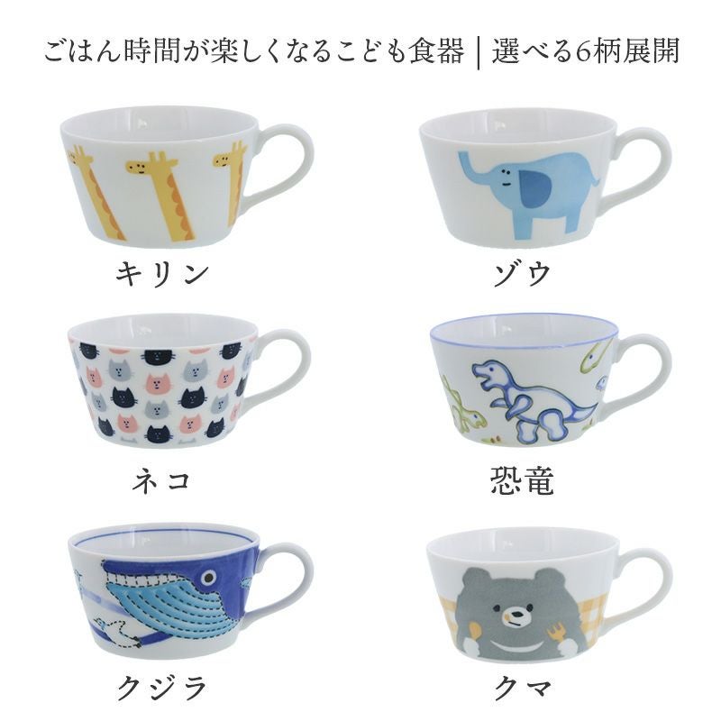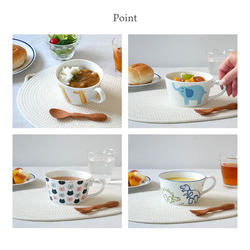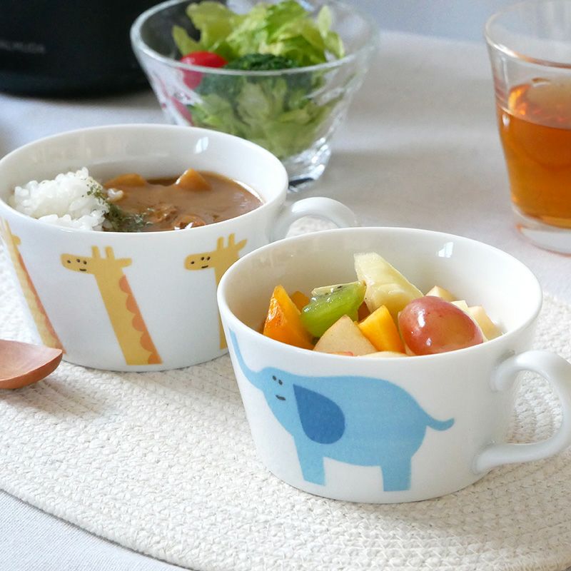 かわいらしい動物のデザインが目を引く、スープカップ。 子供用の食器として最適な容量で、食事の量や種類に合わせてお使いいただけます。 スープ以外にも、フルーツボウル・おかず鉢としてもぴったり。 安心してお使いいただけるよう、日本製・磁器素材で作られています。 かわいい動物たちが描かれた同シリーズのプレートやお茶碗との組み合わせもおすすめ。