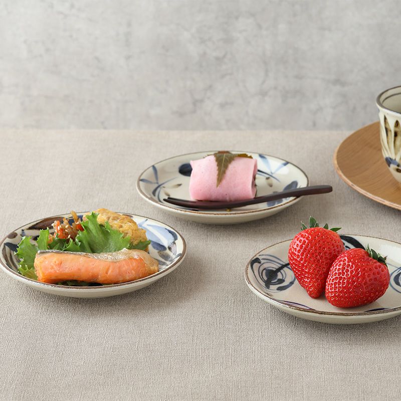 食卓が華やかになる、趣ある和食器。 存在感のある模様が食材を華やかに見せてくれます。 小さめの取り皿やおつまみ皿、一品料理の副菜皿、前菜皿など多用途に使いやすいお皿。 普段使いはもちろん、おもてなし食器としてもおすすめです。