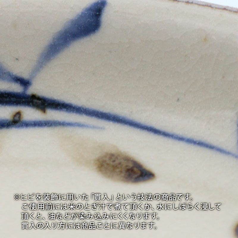 | 注意事項 | ※サイズは全て外寸になります。 ※サイズ・重さなどは商品により誤差があります。 ご注意 ※焼成時の窯の状態により、赤みがかった色合いになる場合がございます。 ※鉄粉やピンホール(小さな穴)、ボロ(小さな突起)が見られる場合がございます。 ※柄むらがある場合がございます。 ※釉薬の垂れや溜まりやムラが見られる場合がございます。 ※ヒビを装飾に用いた「貫入」という技法の商品です。ご使用前には米のとぎ汁で煮て頂くか、水にしばらく浸して頂くと、油などが染み込みにくくなります。貫入の入り方には商品ごとに異なります。 ※お客様のお使いのモニター設定、お部屋の照明等により実際の商品と色味が異なって見える場合がございます。 ※画像に含まれる小物は使用イメージのために使用しています。 ※不明な点がございましたら、お気軽にお問い合わせ下さい。 |