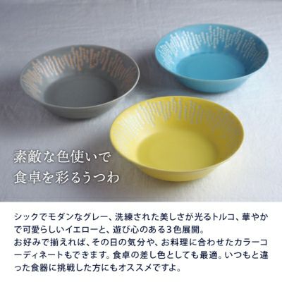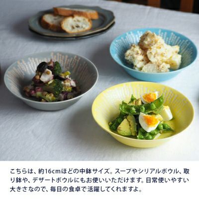 テーブルを華やかにしてくれるカラーと、おしゃれなデザインが様々な料理をおいしそうに引き立ててくれる中鉢。 副菜鉢や取り鉢・サラダボウルとしてぴったりなサイズで、毎日の食卓に欠かせないアイテムです、 シンプルな食器のアクセントにしたり、木製カトラリーとも相性が良いので、カフェ風アレンジも気軽に楽しむことができますよ。