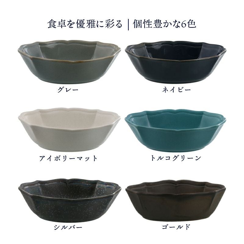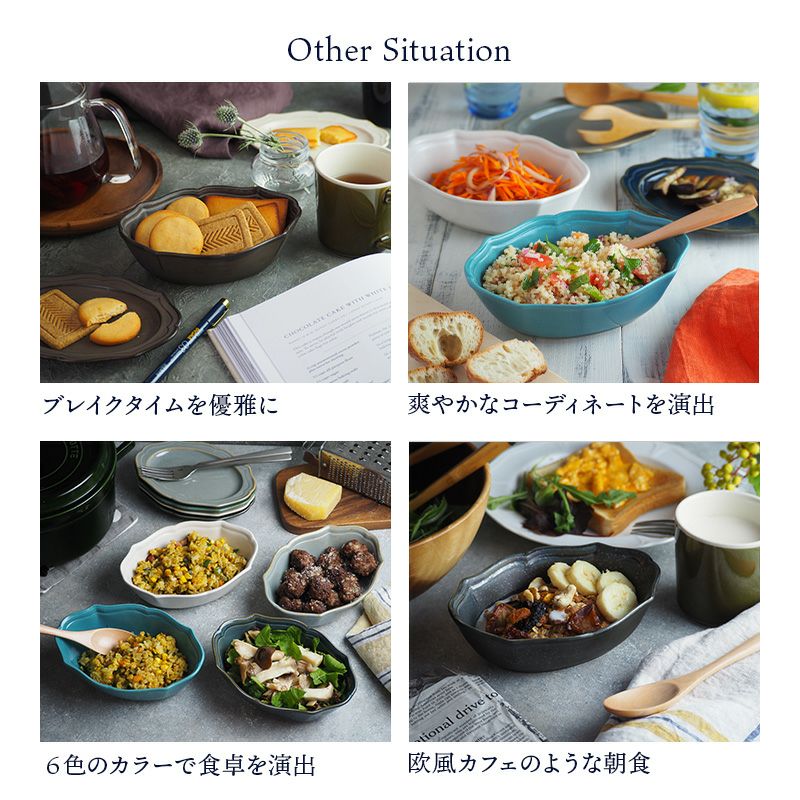 リム部分がデザインされた楕円型のボウルです。 おしゃれな形状とカラーはテーブルを洗練された印象にまとめ、盛りつけた料理を引き立てカフェ風に演出してくれます。 それぞれのカラーは均一な色ではなく、 あえてムラを出したことにより 一つずつ表情が異なる良さを愉しんでいただく器です。 こちらはサラダボウルやデザートボウル、おかず鉢としてはもちろん、しっかり深さがあるのでスープやシチューのボウルとしてもお使いいただけます。
